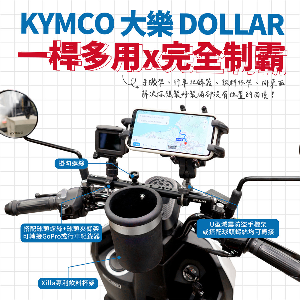 👉XILLA鋁合金手機架/PVC手機架皆可直上平衡桿安裝