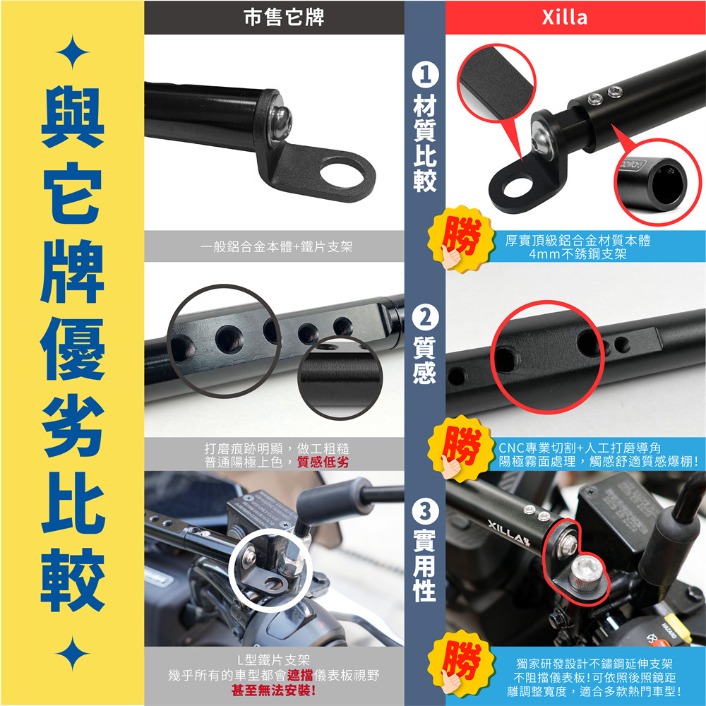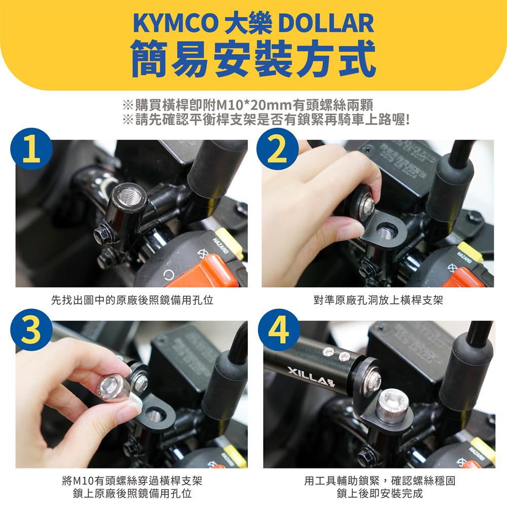 👉原廠後照鏡螺紋長度有限,建議風鏡/平衡桿擇一安裝,或自行更換較長的轉接螺絲