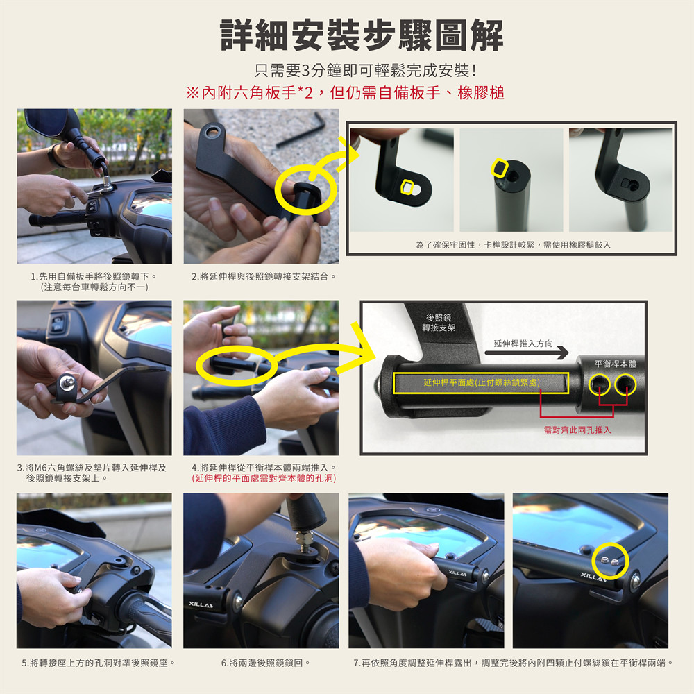 👉需自備板手(拆後照鏡用)&橡膠槌,商品內附兩種尺寸六角板手